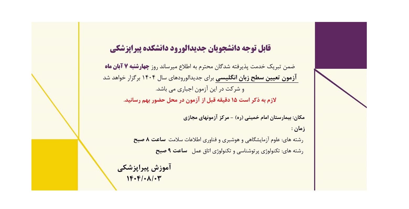 پایان کلاسها: #*# 1404/11/01 #*# امتحانات: #*# 1404/11/04 لغایت 1404/11/21